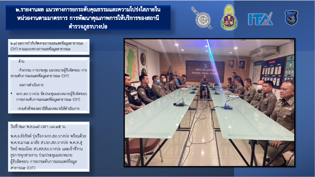 O25 การรายงานผลการดำเนินการตามมาตรการการยกระดับคุณธรรมและความโปร่งใสภายในหน่วย